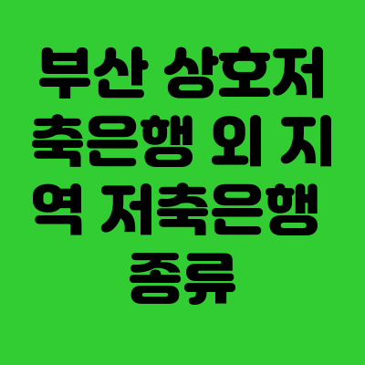 부산 상호저축은행 외 지역 저축은행 종류