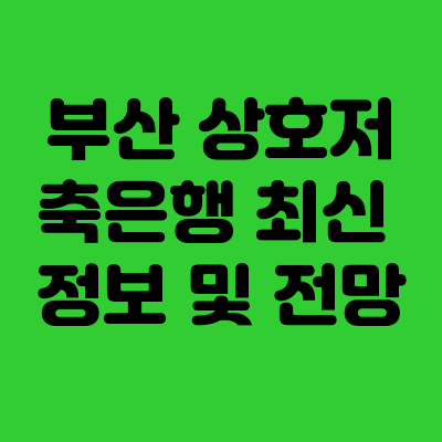 부산 상호저축은행 최신 정보 및 전망